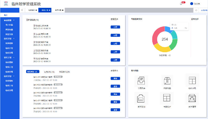 3、教學績效考核與分(fēn)析:教學管理(lǐ)系統可(kě)以收集和(hé)分(fēn)析教學數(shù)據,生(shēng)成∑₽帶教老(lǎo)師(shī)的(de)教學績效以及教學科(kē)室的∏ (de)績效。有(yǒu)利于促進教學部更好(hǎo)的(de)了(le)解全面的(d₹'e)教學情況,持續提升教學質量。