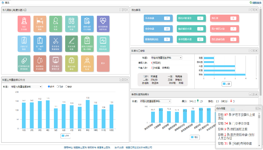 聚智醫(yī)務管理(lǐ)信息系統主要(yào)包括醫(yī)務人(rén)員☆☆ ε(yuán)資質與權限,新技(jì)術(shù)新項目,醫(yī)師(shī)排☆∑&¶班與診療組,醫(yī)療糾紛與投訴管理(lǐ),醫(yī)療核心制(zhì)度督查管理(lǐ)δ∞∞,醫(yī)療核心制(zhì)度記錄本,醫(yī)政綜合管理(lǐ↔ ₽),重點專科(kē)建設管理(lǐ),醫(yī)務人(rén)員(y♦↕®↕uán)技(jì)術(shù)檔案,掌上(shàng)醫(yī)務。充分(fēn)圍繞醫($₹yī)務部日(rì)常對(duì)醫(yī)療安全十八項核心制(zhì)度的(de®'$↑)管理(lǐ)要(yào)求出發,構建起以服務臨床,持續提升醫(yī)療質量為(wèφ©i)目标的(de)移動化(huà),精細化(huà),科(kē)學化(huà)的(♦←'♦de)管理(lǐ)工(gōng)具。