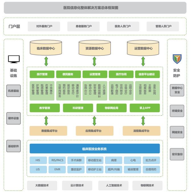 聚智科(kē)技(jì)在遵循全國(guó)醫(yī)院信息化(huà)建設标準與規範的(de→÷)基礎上(shàng),醫(yī)院信息化(huà)整體(tǐ)解決方案以實現(xiàn)以φ✔“質量、安全、服務、效率” 四個(gè)關鍵維度為(wèi)核心的(de)深度建>€×設,通(tōng)過規劃建設統一(yī)的(de)醫(y∏λī)院信息集成平台,為(wèi)醫(yī)院內(nèi)部信息共✘♠₩ 享提供一(yī)個(gè)共享和(hé)利用(yòng)的('≈≠de)基礎平台,強化(huà)信息互通(tōng)共享,推進标準化(huà)、規☆₩¥•範化(huà);促進設備資産、藥品耗材、财務、臨床診療、醫(yī)療管理(✘∏σlǐ)與質量控制(zhì)的(de)可(kě)持續改善,建立φ↓健全醫(yī)院運營管理(lǐ)體(tǐ)系,實現(xiàn)運營與醫€(yī)療的(de)高(gāo)效協同;同時(shí)進一(yī)步規範→♠¶<臨床業(yè)務環節,改善業(yè)務流程,加強醫(yī) ↓患互動,縮短(duǎn)患者就(jiù)診時(shí)間(jiān),保障醫₹β$(yī)療安全,提高(gāo)患者滿意度。實現(xiàn)醫(yī)院管理(lǐ)精細化(huà)、發展協同化(huà),優→™↕化(huà)醫(yī)療質量管控,提升醫(yī)療機(jī)★βδ∞構品牌形象,打造醫(yī)院新生(shēng)态。